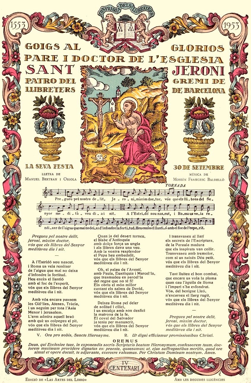 A casa nostra Sant Jeroni és considerat el patró dels llibreters des de fa molts segles. Concretament, des del 1553, quan es constituí a Barcelona la Confraria dels Llibreters, antecedent de l’actual Gremi.
