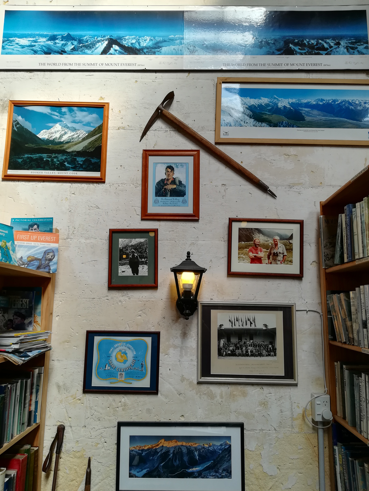 La llibreria té diverses seccions. Una és dedicada a Sir Edmund Hillary, l’escalador neozelandès que el 1953 va ser el primer humà a coronar l’Everest. Alpinisme, escalada, exploracions, viatges i viatgers tenen el seu espai. En entrar a la llibreria crida l’atenció el color blau, en la majoria de les cobertes dels llibres predomina aquest color, sigui mar o cel, el blau és omnipresent.