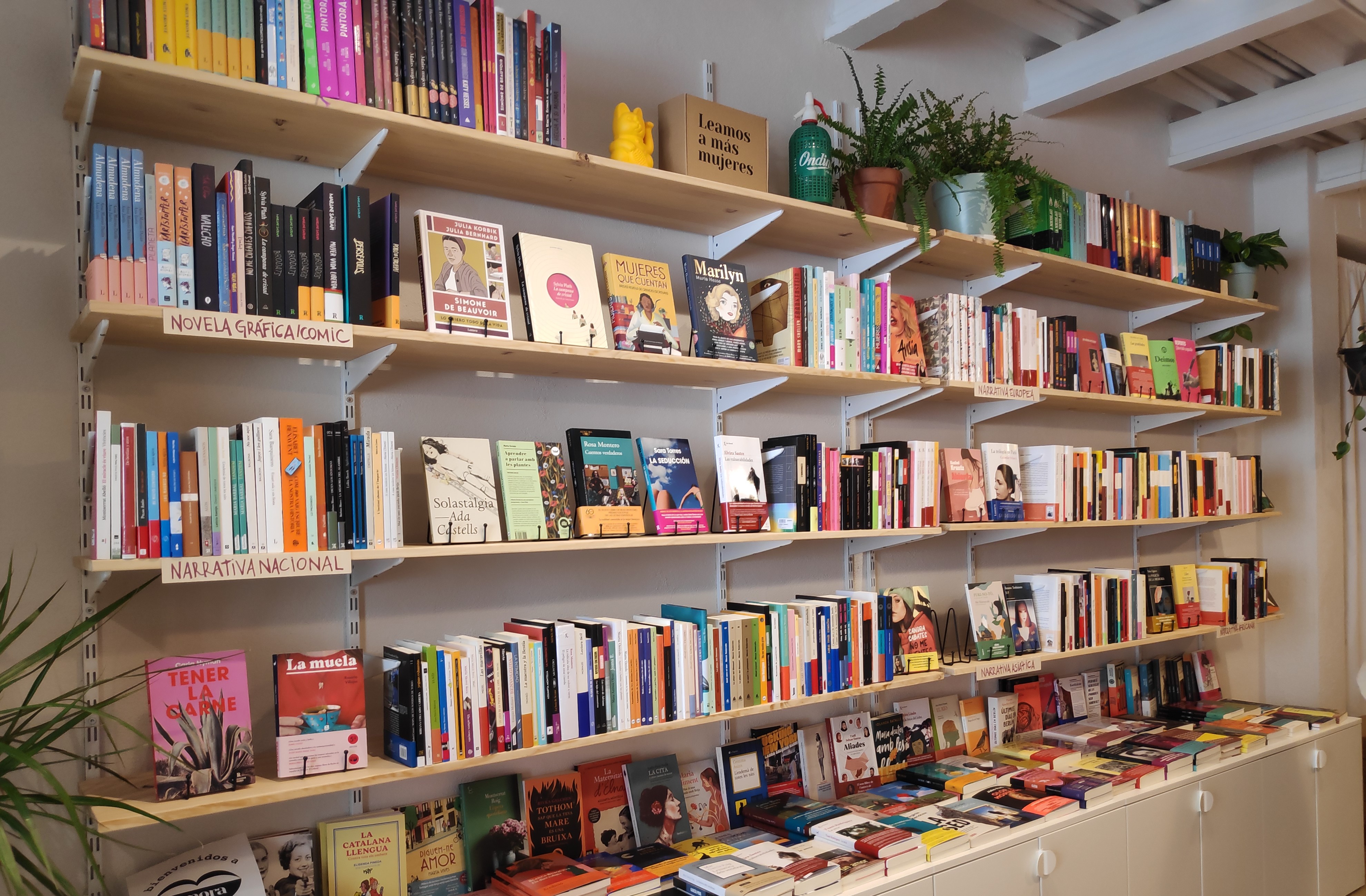 La petita i acollidora llibreria ens presenta els llibres sota epígrafs majoritàriament geogràfics: Catalunya, Espanya, Llatinoamèrica, Europa, Àfrica… i també llibres sobre psicologia, maternitat, salut, dol…