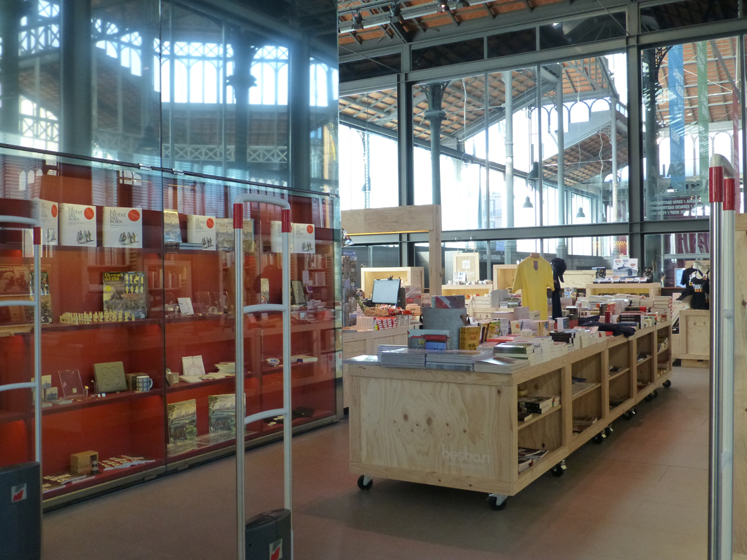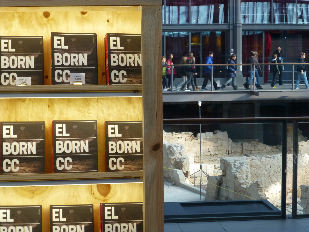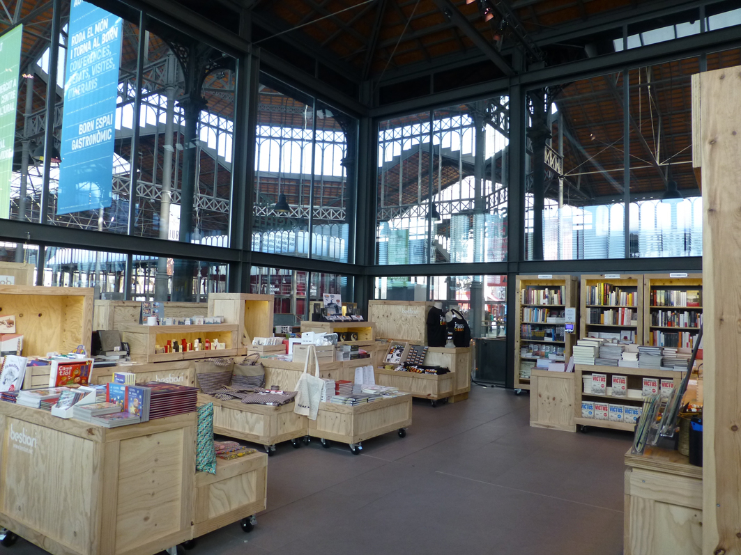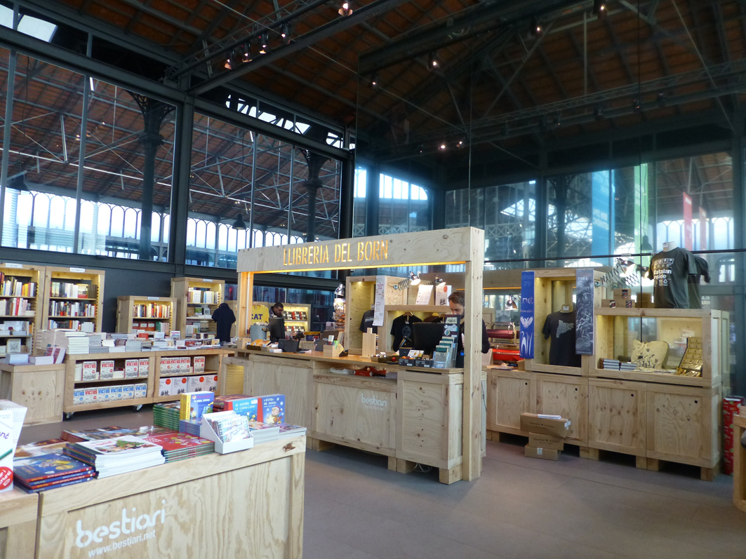 Visitem la Llibreria del Born un fred dia de desembre. Els matins és atesa pels llibreters Jordi Sànchez i Oriol Canosa. Amablement em posen al corrent d’alguns detalls. El mobiliari, taules i prestatges amb rodes i el taulell d’atenció al client són de pi sense tractar. Un material humil triat amb el propòsit d’evocar el mercat que va ser, les caixes de fruites i de verdures sovint eren d’aquesta fusta. Algú opina que recorden als carretons emprats pels arqueòlegs per transportar les seves troballes. De fet tot lliga, el Born són moltes coses a l’hora: un jaciment arqueològic, un antic mercat, un museu, un indret de lleure i un espai de memòria històrica.