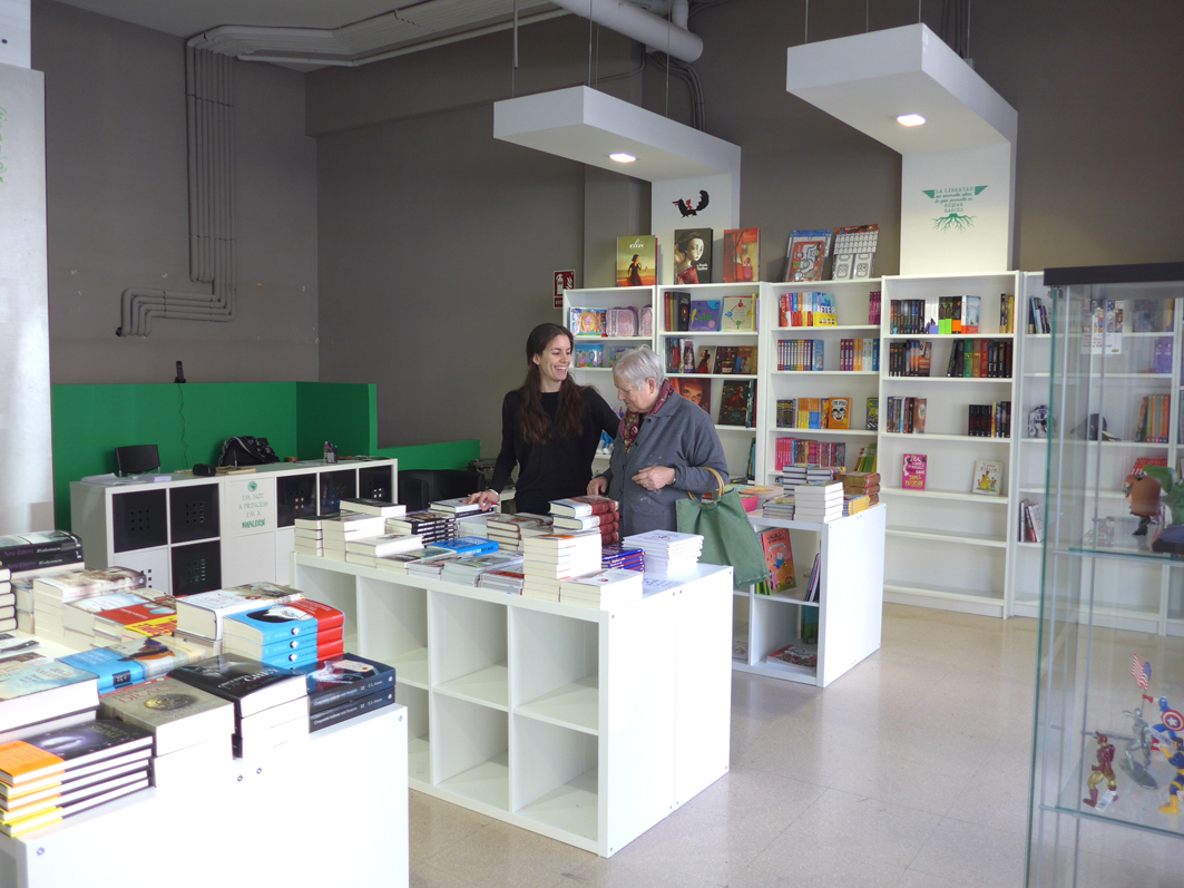 És un espaiós local que no ha necessitat reformes, ocupa dues plantes, una a peu de carrer de 60 metres quadrats i un soterrani de 90. És una llibreria generalista, amb especial atenció a les microeditorials i les autoedicions. A més de novetats editorials, i això la diferencia, té les seccions d’outlet i llibre de segona mà. Al soterrani, a més d’aquestes dues seccions, hi ha la zona d’activitats infantils, una petita sala d’actes i un despatx. Els llibres estan ordenats sense diferenciar el català del castellà i les autoedicions comparteixen l’espai entre la resta de llibres nous.