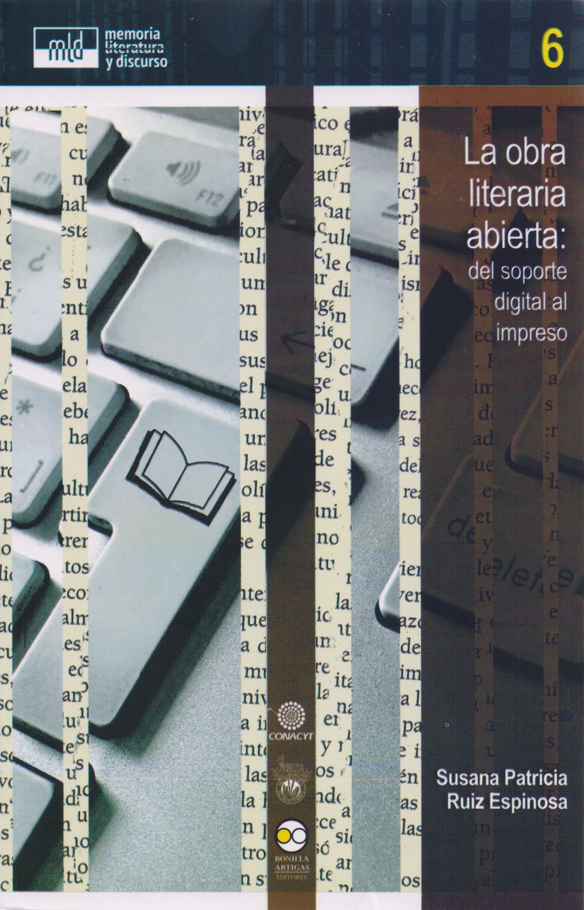Ruiz Espinosa, Susana Patricia. La obra literaria abierta: del soporte digital al impreso. Ciudad de México: Bonilla Artigas, 2016. 244 p. (Memoria literaria y discurso; 6). ISBN 978-607-8450-30-5. 18 €.