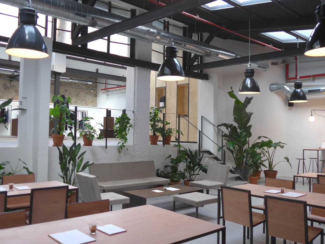 Les dimensions i el seu disseny, un cert aire postindustrial, minimalista, gairebé zen, diferencien Wer-Haus de la resta de botigues, conceptstore de moda obertes darrerament a Barcelona. La generositat dels diferents àmbits, amples i lluminosos, fa que el visitant, el client hi vulgui estar força estona. La cafeteria, a més d’una exquisida oferta gastronòmica, serveix una selecció de cafès artesanals del món, la cafetera, una Synesso Cyncra és considerada com de la millor marca. L’oferta s’arrodoneix amb una selecció de revistes internacionals de moda i disseny.
