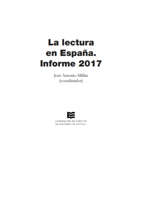 Millán, José Antonio (coord.). La lectura en España: informe 2017. Madrid: Federación de Gremios de Editores de España, 2016. 230 p. ISBN 978-84-86141-61-5. Disponible també en línia.