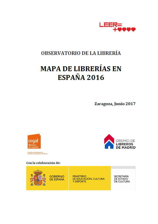 Mapa de librerías en España 2016 [en línia]. [Por] Observatorio de la Librería. Dir., y realización, Rafael Bravo Gil. [Madrid]: Cegal: Gremio de Libreros de Madrid; Zaragoza: Universidad de Zaragoza, Oficina de Transferencia de Resultados de Investigación, junio 2017. [13], 61 p. <https://www.cegal.es/wp-content/uploads/2017/11/MAPA-DE-LIBRER%C3%8DAS-2016_octubre-2017-final.pdf>. [Consulta: 24 des. 2017].