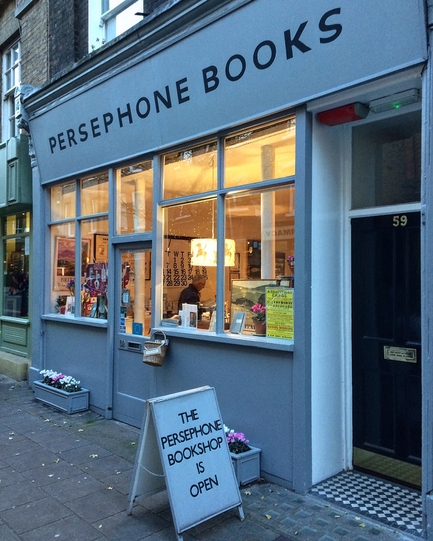 Persephone Books, a Bloomsbury, el barri literari londinenc per excel·lència, no és una llibreria a l’ús. De fet, és més aviat un segell editorial i punt de venda dels llibres que edita. Però el lloc és bell i especialment cuidat, com les seves edicions. Persephone Books està especialitzada en la publicació de llibres d’escriptores del segle passat, moltes d’elles oblidades. Desconec gran part, per no dir el conjunt, de les autores dels llibres que allí s’exposen, però en compraria molts, encara que fos per simple tsundoku. Cada exemplar porta un punt de llibre a joc amb el paper de les guardes. Aquest és només un detall dels múltiples que configuren aquesta iniciativa i aquest espai: pòsters, flors, ceràmiques, robes, una antiga màquina de cosir… M’emporto un exemplar ‒gratuït‒ de la revista de l’editorial i una selecció dels diaris de Virginia Woolf, que espero tenir temps i esma de llegir.