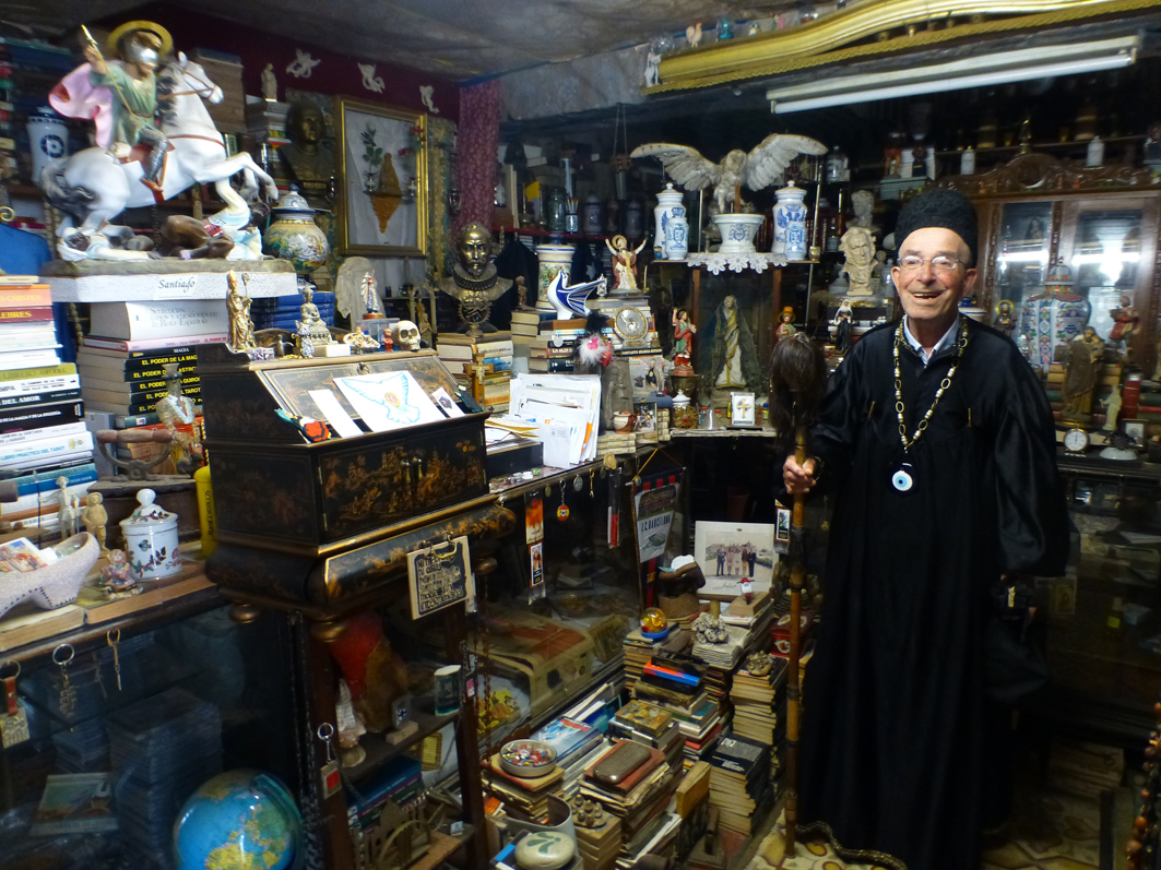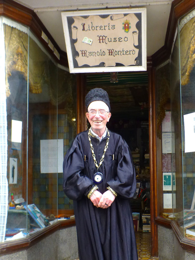 Abans havia estat el llibreter de Mondoñedo; encara conserva la llibreria que més que llibreria és un gabinet de curiositats i que li agrada ensenyar, fa visites guiades. Va vestit de mag i es passeja amunt i avall pels carrers del poble. Segons ell, Cunqueiro es va inspirar en la seva persona per escriure el llibre. És pacífic, si us enxampa desprevinguts us explicarà un munt d’històries; si teniu pressa val més esquivar-lo. Forma part del patrimoni, amb raó, de Mondoñedo.