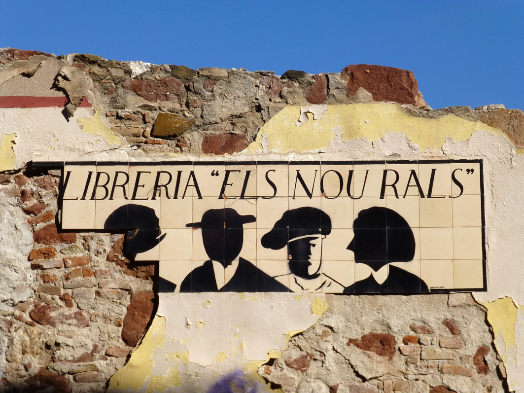 Llibreria Els Nou Rals, antic rètol de rajoles, situat on hi va haver la primera llibreria |