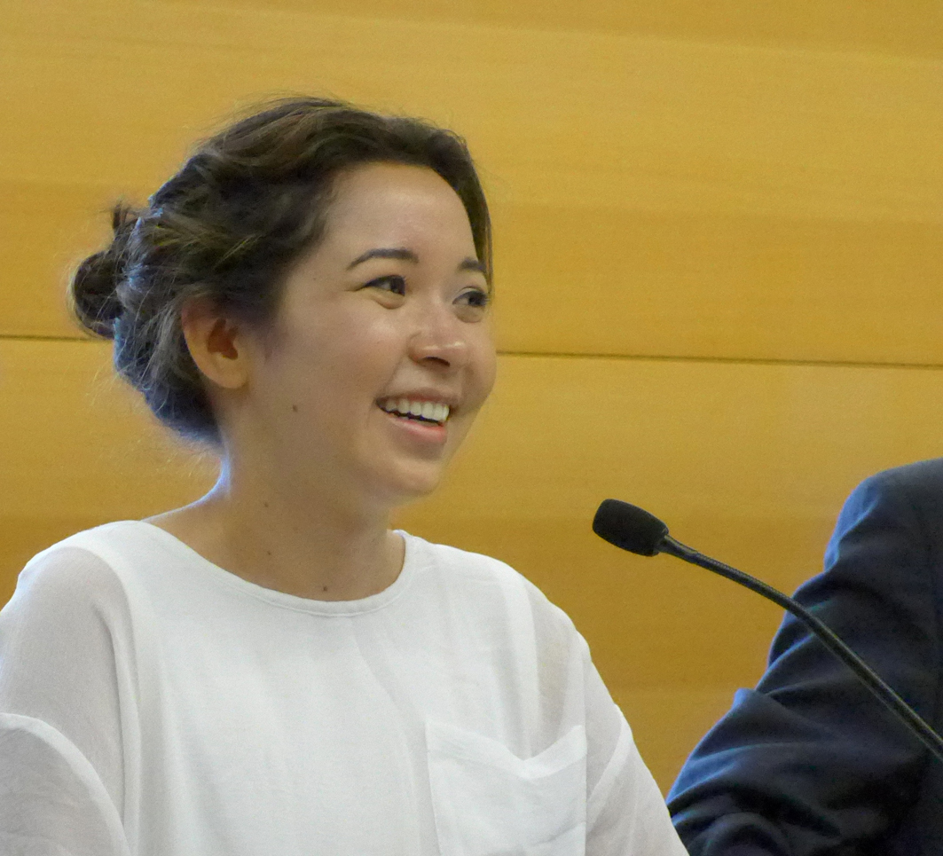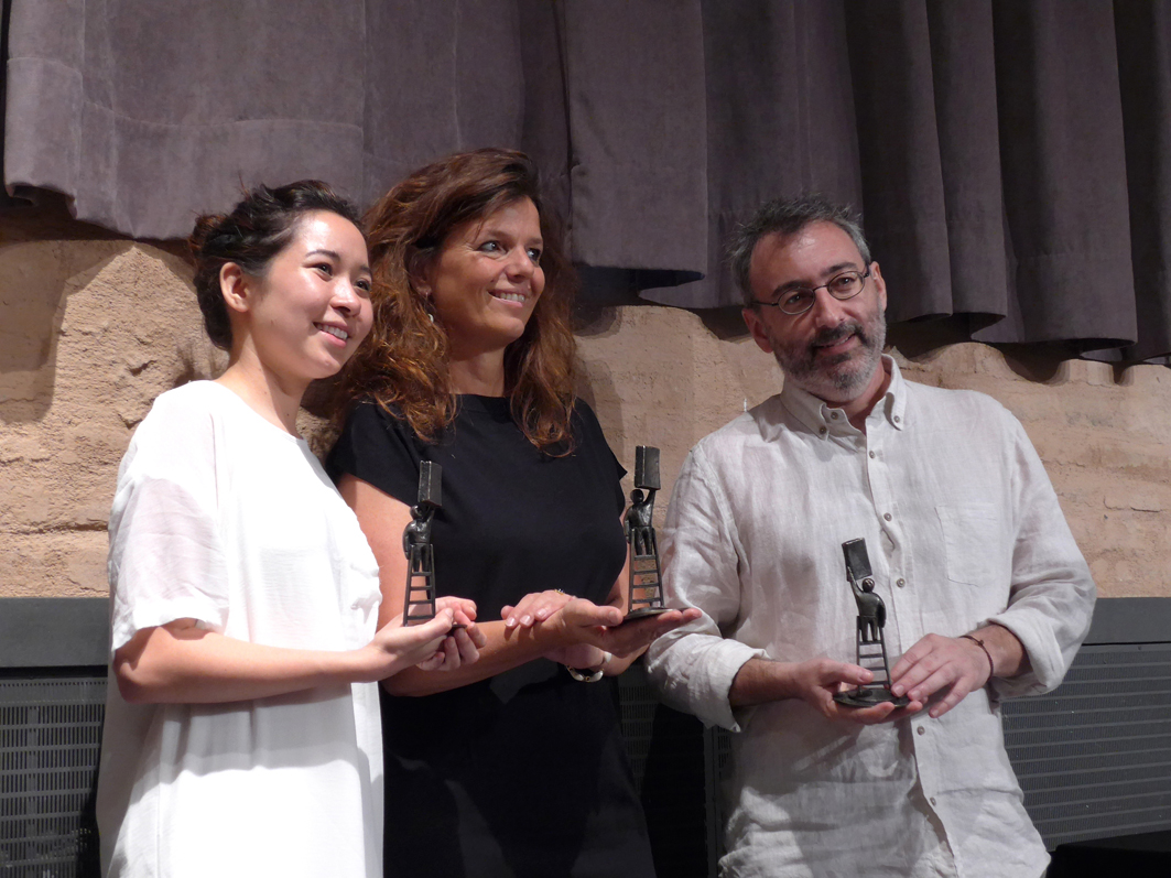 Primer ho fa la Paula Jarrin de la llibreria Al·lots de Barcelona. Anuncia la guanyadora del Premi a l’Àlbum Il·lustrat, és una joveníssima autora nascuda a Hawaii fa 23 anys, l’Emily Hughes, que debuta amb Salvatge, un conte escrit i dibuixat per ella mateixa. Narra la història d’una nena que viu en plena natura, juga, parla i riu amb totes les besties, és valenta, lliure i feliç fins que un dia una parella d’éssers molt semblant a ella pretenen «civilitzar-la». Dibuixos vius i frescos com el bosc on habita Salvatge. Durant el torn de preguntes, Hughes, una mica nerviosa però feliç, reconeix en el seu pare la inspiració del conte, ell li va ensenyar que el que val és l’interior de les persones. Fa d’intèrpret la Maria Notó, llibretera de Nollegiu i la seva traductora al català.