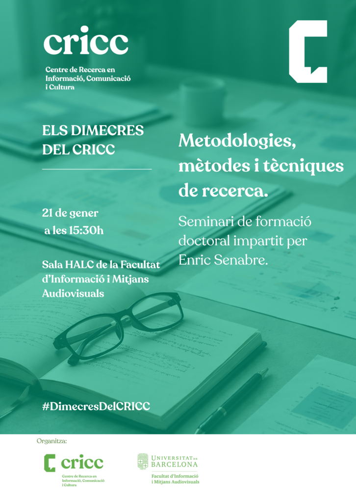 Aquest seminari és especialment rellevant per a l’estudiantat de primer any, ja que proporciona eines fonamentals per a la definició i estructuració del pla de recerca, que s’ha de lliurar el 15 de juny. Tanmateix, també pot resultar molt útil per a doctorands en fases més avançades que vulguin reforçar o revisar el seu enfocament metodològic.