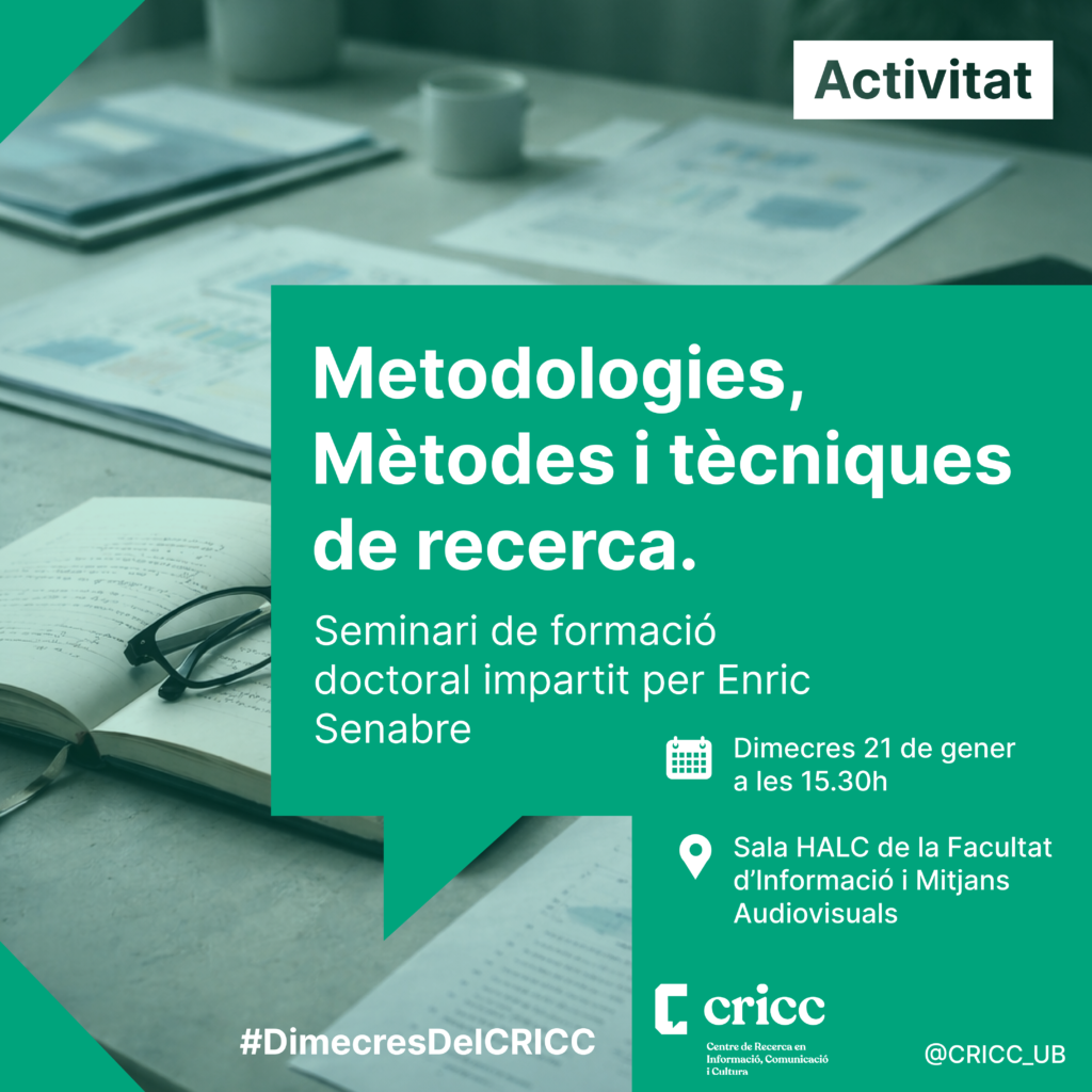 Aquest seminari és especialment rellevant per a l’estudiantat de primer any, ja que proporciona eines fonamentals per a la definició i estructuració del pla de recerca, que s’ha de lliurar el 15 de juny. Tanmateix, també pot resultar molt útil per a doctorands en fases més avançades que vulguin reforçar o revisar el seu enfocament metodològic.