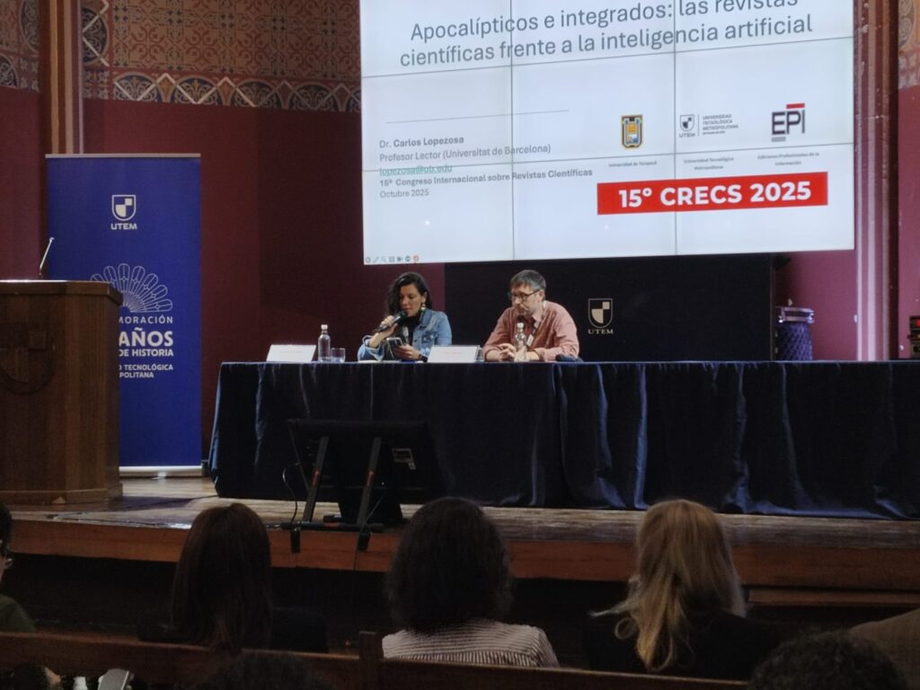 Els professors de la FIMA Carlos Lopezosa i Javier Guallar han participat al XV congrés internacional de revistes científiques CRECS, que ha tingut lloc a la Universidad Tecnológica Metropolitana UTEM, a Santiago de Xile, els dies 8 al 10 d’octubre de 2025.