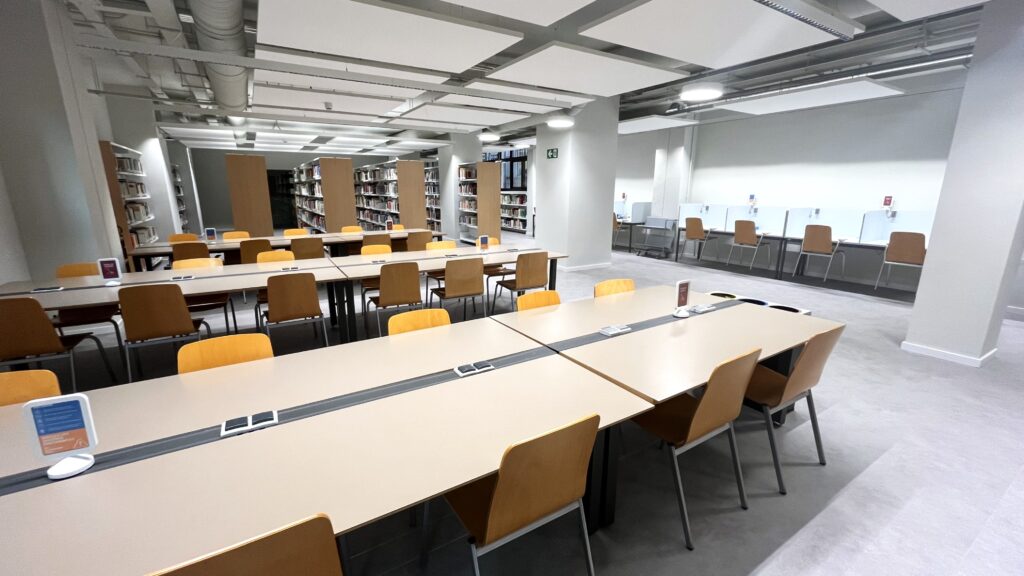 Aquest dilluns 27 d’octubre de 2025, el CRAI Biblioteca d’Informació i Mitjans Audiovisuals ha tornat a obrir les portes després d’un any i mig de biblioteca provisional i de cinc setmanes de mudança. Durant aquest temps, la biblioteca s’ha renovat a fons, i el resultat és un espai completament nou, més còmode, funcional i acollidor.