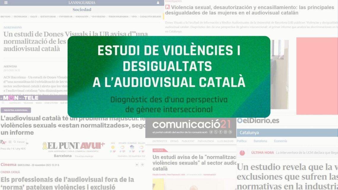 El passat 20 de novembre de 2025 es va presentar l’estudi Violències i desigualtats a l’audiovisual català: diagnòstic des d’una perspectiva de gènere interseccional, de Dones Visuals i la Facultat d’Informació i Mitjans Audiovisuals (FIMA). La publicació d’aquesta investigació ha tingut un ampli ressò als mitjans de comunicació: EL PERIÓDICO LA VANGUARDIA EL…